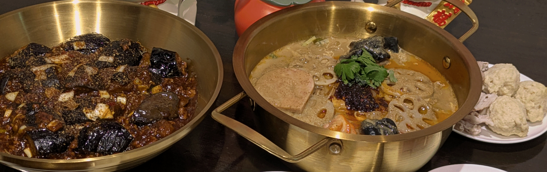 麻婆茄子丼、鴨血芝麻醤砂鍋面、水餃子、凉拌鶏架
